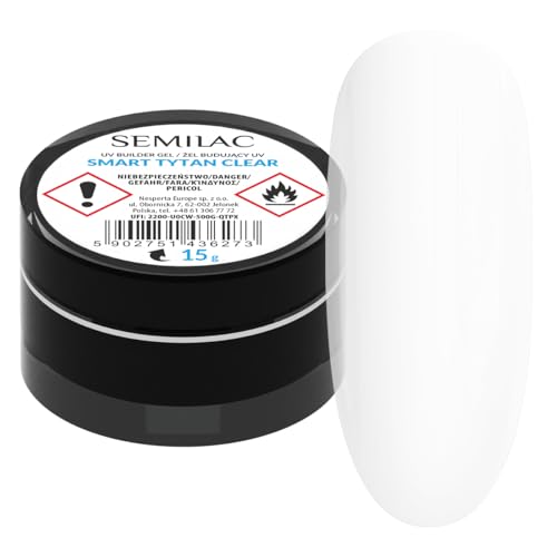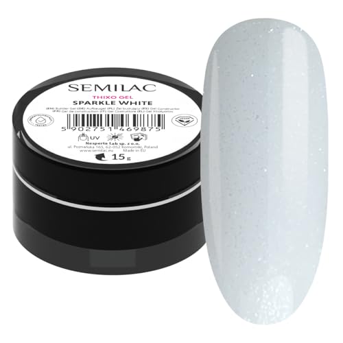 Semilac Builder Thixo Gel Sparkle White 15 g - Construction avec brillance pour extension et construction des ongles - UV LED - Tiksotrope et auto-lissant - Gel de couverture blanc avec paillettes