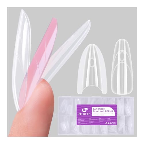 Gelike ec Professional Dual Nail Forms for Builder Gel: Sandwich Design Nail Shapes 240 Pièces 15 Tailles - Moule 2026 Sans Empilage de Gel - Pour Extensions Parfaites DIY & Salon - Ballerine