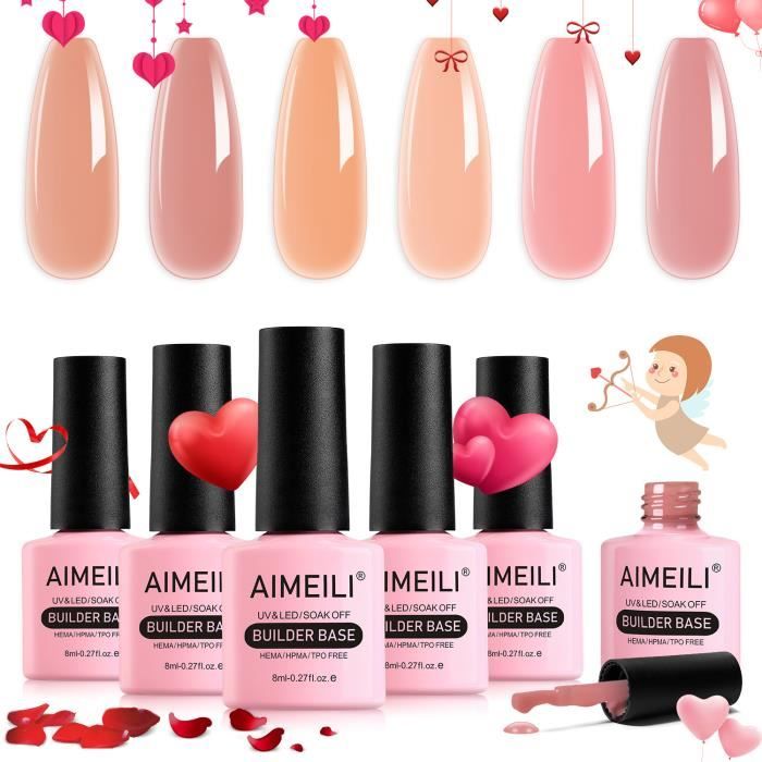 AIMEILI 6 en 1 Builder Base Gel Set 6PCS 8ml Naturel Nude Rose - Gel de Construction pour ExtensionRéparation de Manucure- Kit 35
