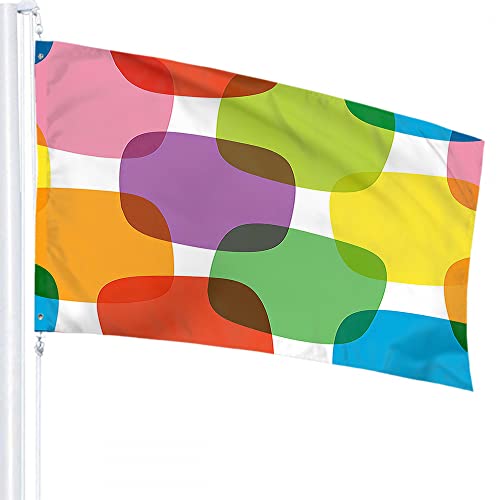 Drapeau géométrique 0,9 x 1,5 m Cube Art arc-en-ciel couleur cercles boîte bulle croix Doodle points drapeaux extérieurs grandes bannières de bienvenue cour maison jardin cour pelouse décor