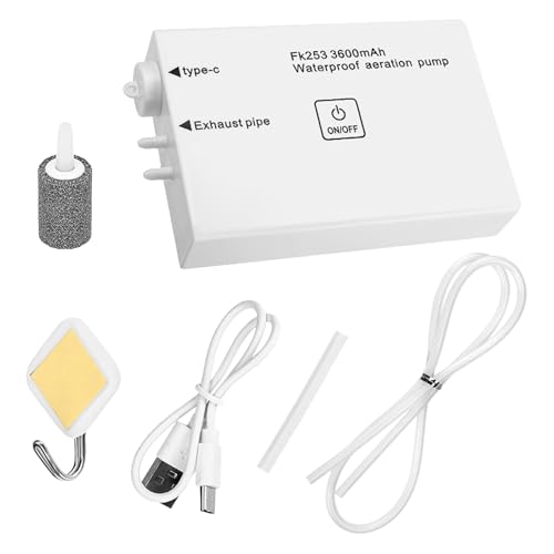 Bulleur d'oxygène portable pour aquarium, pompe à air rechargeable pour aquariums, fonctionnement silencieux alimenté par batterie, design compact de 13 x 5,6 x 8,3 cm, longue durée de vie