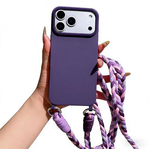 Einaily Coque Compatible avec iPhone 12 Pro Max avec Cordon,Silicone Housse Collier pour Étui Colliers de cellulaire Corde avec Cordon Case TPU Bumper pour iPhone 12 Pro Max Ètuis à Bandoulière-Violet