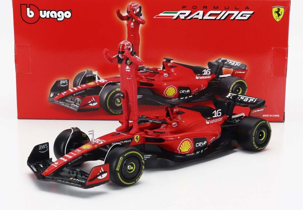 MODÈLE DE VOITURE STATIQUE BURAGO FERRARI F1 SF23 #16 FIGURINES LECLERC 2023 ...