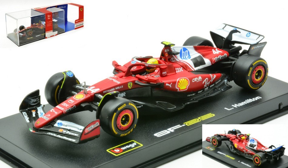 MODÈLE DE VOITURE STATIQUE BURAGO FERRARI F1 SF-25 LEWIS HAMILTON 2025 VITRIN...