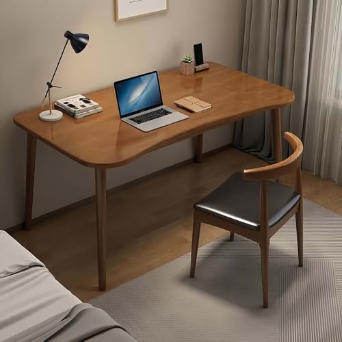 Bureau Ergonomique Moderne en Bois, Bureau Incurvé pour Écrire Et Étudier, Finition Naturelle Élégante Et Design Peu Encombrant pour La Maison Et Le Bureau C,100X60CM