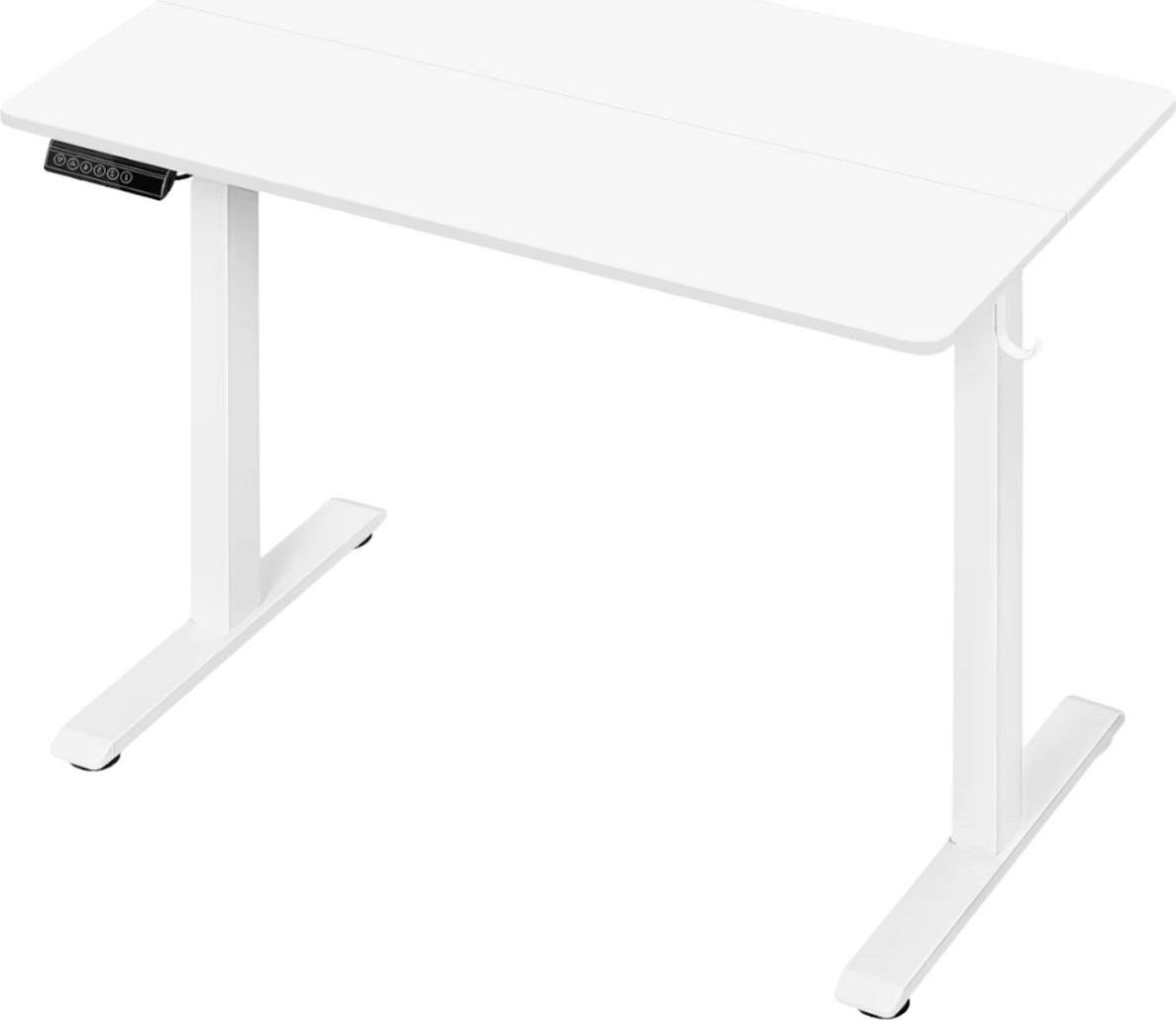Bureau blanc SONNI réglable en hauteur électriquement 100x60 cm, charge max. 60 kg, avec sécurité enfant et fonction mémoire, plateau de 15 mm