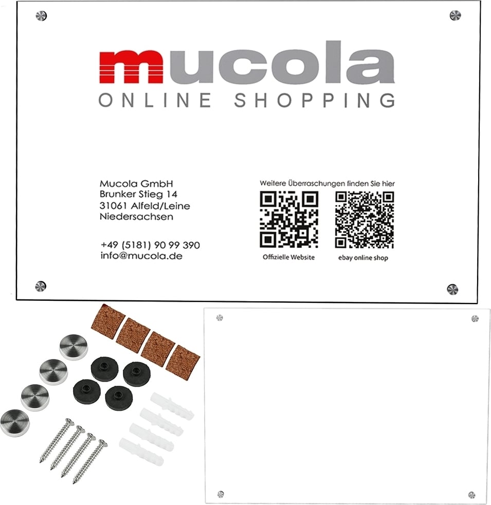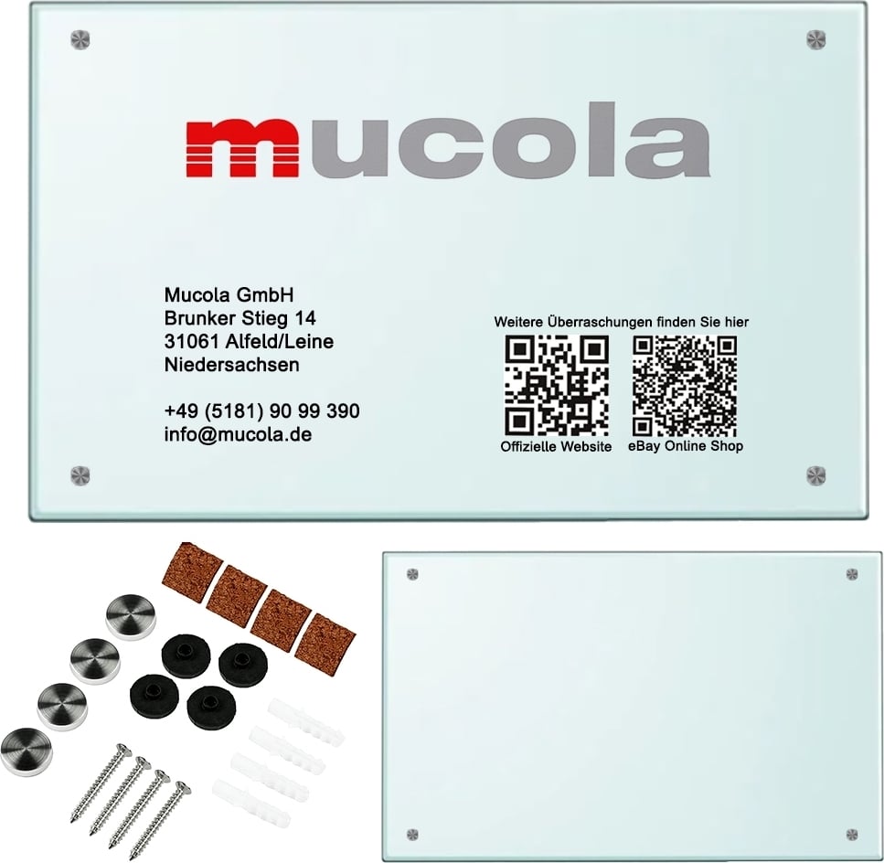 Mucola Panneau d'entreprise Panneau publicitaire Panneau de cabinet médical Verre 100x60 Verre de sécurité Logo Nom de l'entreprise Salles de réunion Cabinets médicaux Environnement de bureau