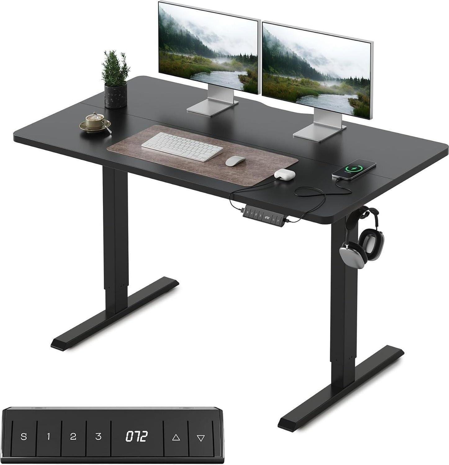 SONNI Bureau noir réglable en hauteur électriquement 100x60 cm, charge max. 60 kg, avec sécurité enfant et fonction mémoire, plateau de 15 mm