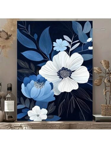 lianyibo 1 toile murale abstraite moderne bleue et blanche à motif floral, élégante impression botanique pour salon, décoration de bureau (70 x 110 cm/sans cadre)