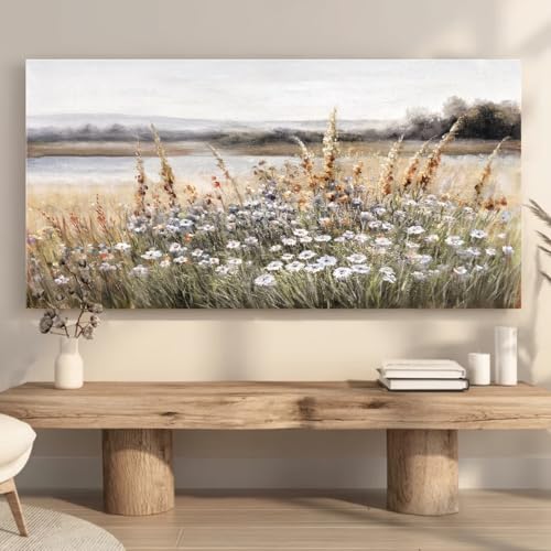 Grande affiche décorative sur toile représentant de charmantes fleurs sauvages et herbes aromatiques, idéale pour décorer un salon, une chambre, une cuisine ou un bureau (55 x 110 cm / sans cadre).