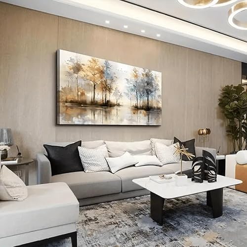 PEWFBS Tableau sur toile extra-large Forêt de bouleaux d'automne – Impression de peinture abstraite moderne sur toile pour la décoration du salon, de la chambre ou du bureau (55 x 110 cm/sans cadre)
