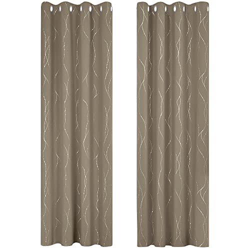 Deconovo Lot de 2 Argent Imprimé Motif Rideau Occultant Taupe Isolant Décorative Oeillets Thermique Anti Froid pour Fenêtre Bureau 140×260 cm
