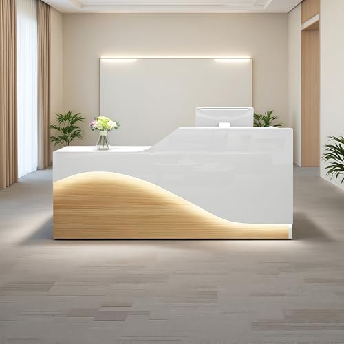 Bureau de réception large avec lampe à DEL et tiroirs verrouillables et compartiments de rangement, grande capacité pour salle de réception, salle de conférence ou bureau (A droit, 140 x 60 x 90 cm)