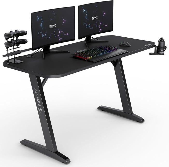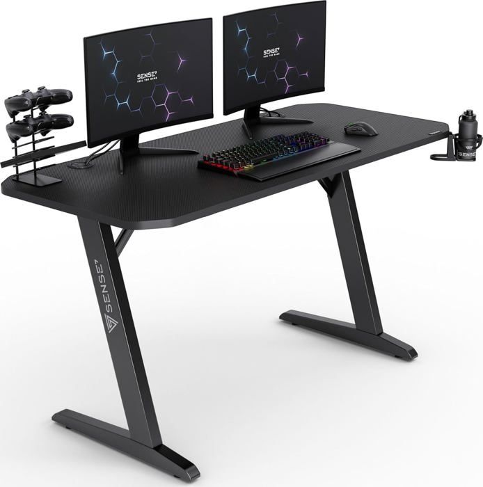 SENSE7 Bureau Nomad Classic Bureau Gaming 140x60 Bureau PC avec Crochet pour Casque Porte-gobelet Support pour Manette