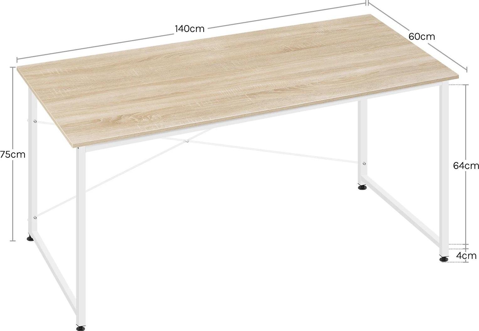 Bureau - Table d'ordinateur/table de jeu - 140x60 cm Rectangulaire - Piètement métal - Plateau bois - Homeoffice - Chêne clair