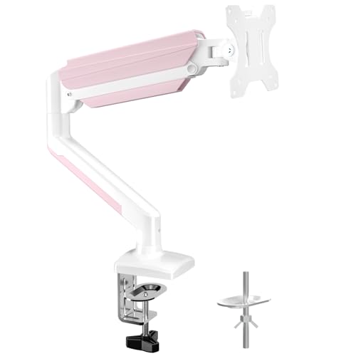 suptek Support Ecran PC pour Moniteur LCD LED de 13 à 32 Pouces, Bras Ecran PC Bureau à Ressort à Gaz, Hauteur Réglable, VESA 75/100 mm, Rotation à 360°, Capacité 2-9 kg, Blanc et Rose (MD01AWP)