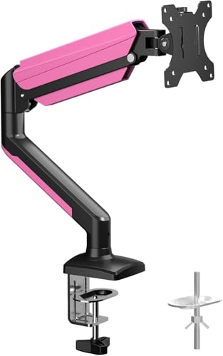 suptek Support Ecran PC pour Moniteur LCD LED de 13 à 32 Pouces, Bras Ecran PC Bureau à Ressort à Gaz, Hauteur Réglable, VESA 75/100 mm, Rotation à 360°, Capacité 2-9 kg, Noir et Rose (MD01ABP)