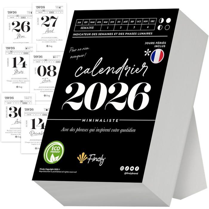 Éphéméride 2026 Janvier-Décembre - Calendrier bureau 135x95cm - Citations positives quotidiennes - Inspiration motivation