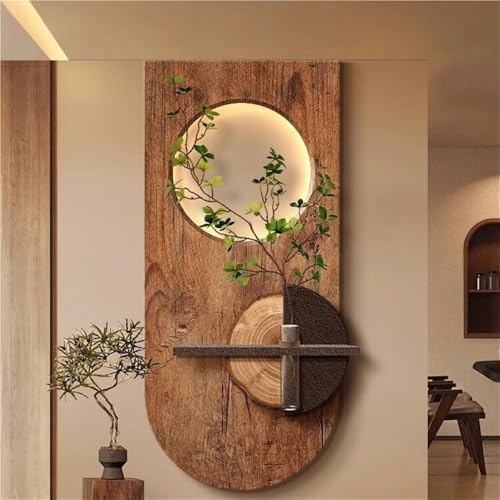 Décoration murale en grès 3D – Art végétal hydroponique avec lumière LED, idéal pour la décoration de la maison ou du bureau, peinture à suspendre (A)