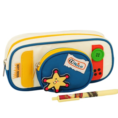 Trousse Scolaire a Crayon Fille 2 Compartiments Transparent Pendentif Ado Enfant Grande Capacite Vintage Organiseur Fourniture Scolaire Original Fun Bureau College Lycee Etudiant Cadeau (Bleu 1)