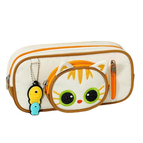 freesiom Trousse Scolaire a Crayon Fille Femme Ado Enfant Grande Capacite Chat Animaux Portable Vintage Organiseur Fourniture Scolaire Kawaii Original Fun Bureau College Lycee Etudiant Cadeau (Blanc)