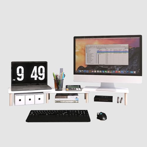 Générique Support de Bureau en Bois pour Deux écrans, rehausseur de Bureau réglable en Longueur et en Angle, étagère multifonctionnelle Extra Longue pour écran d'ordinateur (Taille : H 9,7 c