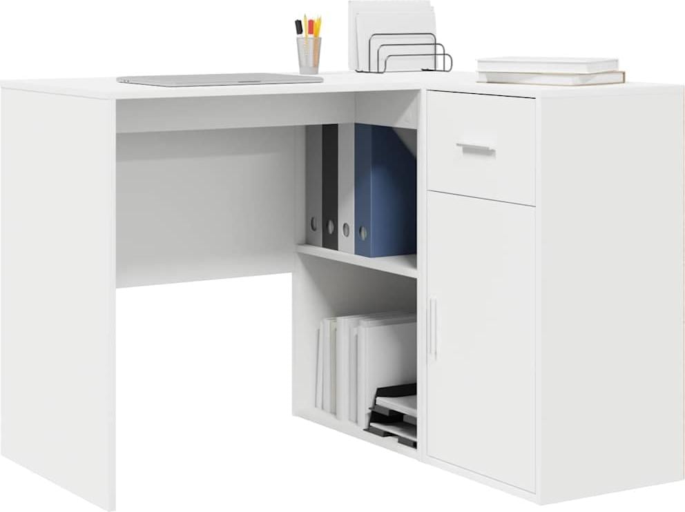vidaXL Bureau d'angle avec étagère Blanc 102 x 50 x 75 cm Bois composite