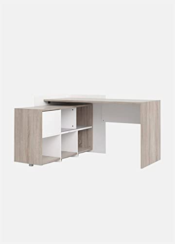 Dmora - Bureau d'angle avec étagère à Six Compartiments, Coloris chêne et Blanc, 140 x 80 x 120 cm