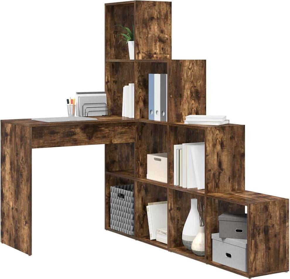 Bureau d'angle avec étagère chêne fumé 101,5 x 149,5 x 149,5 cm