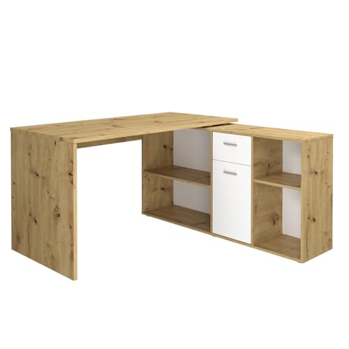 FMD Furniture 353-001 Combinaison d'angle de Bureau en Finition chêne Artisan Imitation Blanc Dimensions Table env. 136 x 75 x 68 cm Dimensions de l'étagère env. 137 x 71 x 33 cm