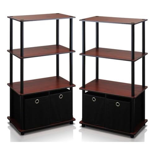 Furinno Turn-S-Tube, Ensemble De 2 Rangement, Étagère À Livres À 3 Niveaux, Étagère d'angle, Étagères Ouvertes sans Outil, Tubes Carrés, Rangement, Salon/Bureau/Garage, Noyer