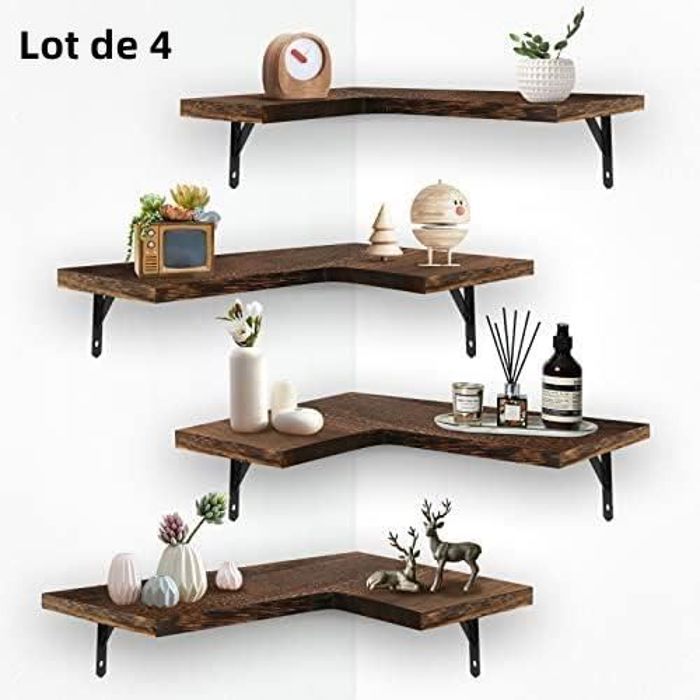 Étagères d’Angle Flottantes Etagere Murale Bois avec Supports Métalliques pour Salon Chambre Cuisine décoration de Bureau