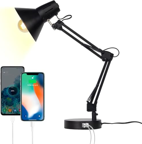 Virone DIAN Lampe De Bureau avec Support en Acier Lampe Architecte à Source de Lumière Remplaçable avec Culot E27 Articulée Ampoule Non Incluse