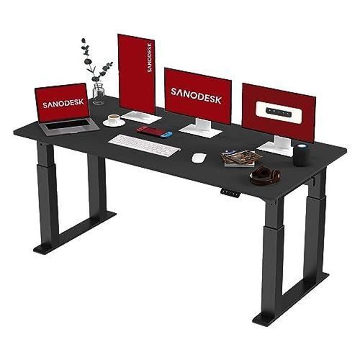 SANODESK Bureau Assis Debout Électrique Bureau Réglable en Hauteur avec Crochet et Fonction Mémoire Plateau Noir 180x80cm