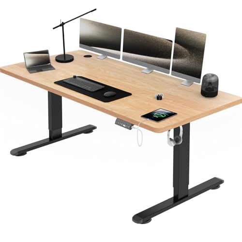 SANODESK FQ2 Bureau Assis Debout Électrique 120x60cm Plateau Complet, Bureau Debout Réglable en Hauteur, Panneau Clavier Contrôle à Fonction Mémoire, Érable