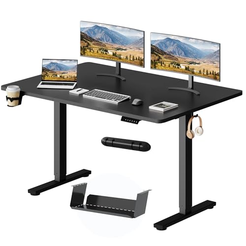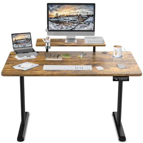 Devoko Bureau Assis Debout 140×60cm avec Support de Moniteur Bureau Réglable en Hauteur Électrique avec 2 Hauteurs de Mémoire pour Travailler