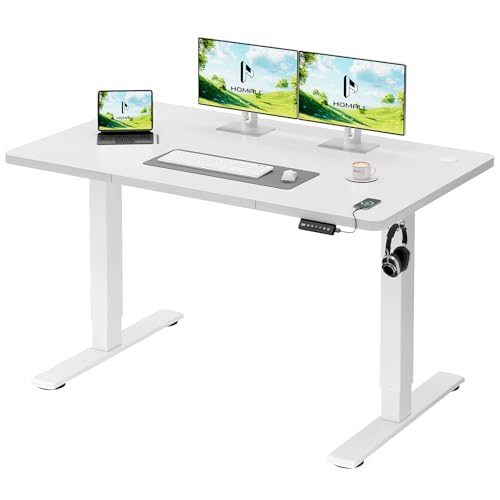 Homall Bureau Assis Debout 140 x 60 cm, Bureaux Électrique Table Réglable en Hauteur avec Chargeur USB, Rappel de sédentarité, 3 Positions Mémorisables, Blanc