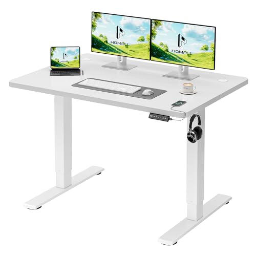 Homall Bureau Assis Debout 120cm, Bureau Réglable en Hauteur Électrique, 3 Hauteurs de Mémoire pour Travailler, Système Anti-Collision, Crochet pour Casque, Blanc