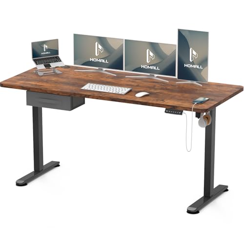 Homall Bureau Assis Debout 160 x 70 cm, Bureaux Électrique Table Réglable en Hauteur avec Chargeur USB, Rappel de sédentarité, 3 Positions Mémorisables, Marron