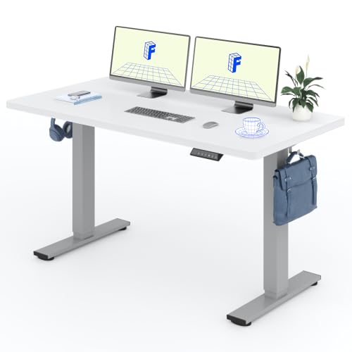 FLEXISPOT Bureau Assis Debout 140x80cm avec Crochets, 25mm Plateau Monobloc, Bureau Électrique avec Affichage LED de la Hauteur, Fonction Mémoire (Cadre Gris+Plateau Blanc)
