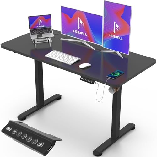 Homall Bureau Assis Debout 100 x 60 cm, Bureau Réglable en Hauteur Électrique, 3 Positions Mémorisables, Système Anti-Collision, Crochet pour Casque, Noir