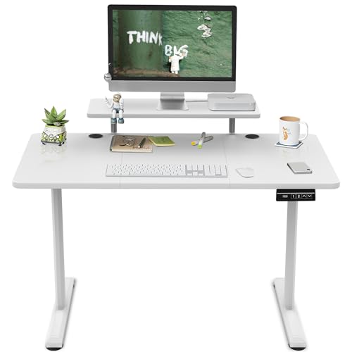 TRIUMPHKEY Bureau Assis Debout 140×60cm Bureau Hauteur Réglable Electrique,Blanc Ordinateur,Standing Desk,Table Assis Debout Idéal pour l'apprentissage et Les Jeux