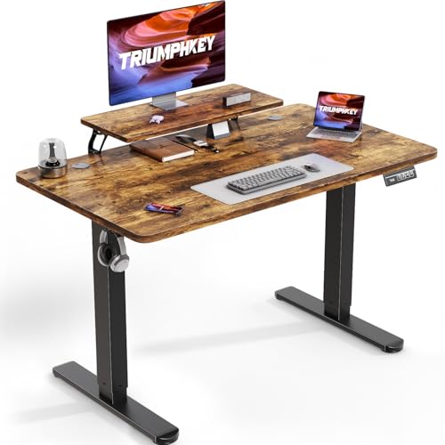 TRIUMPHKEY Bureau Assis Debout 120×60cm Bureau Hauteur Réglable Electrique,Marron Ordinateur,Standing Desk,Table Assis Debout Idéal pour l'apprentissage au et Les Jeux