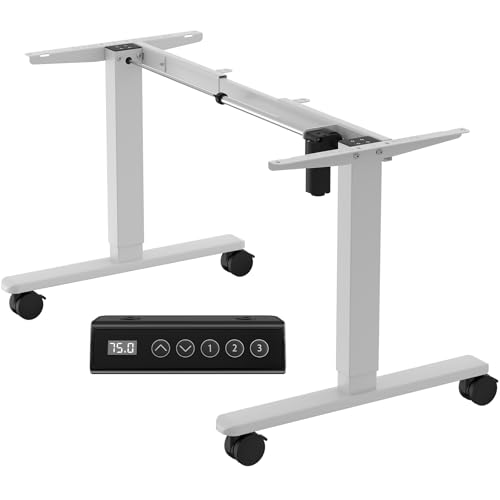 TRIUMPHKEY Cadre de Bureau Assis Debout Electrique Réglable 2 Étages en Hauteur avec Mémoire Automatique,Pieds de Table réglables en Hauteur, Cadre de Blanc