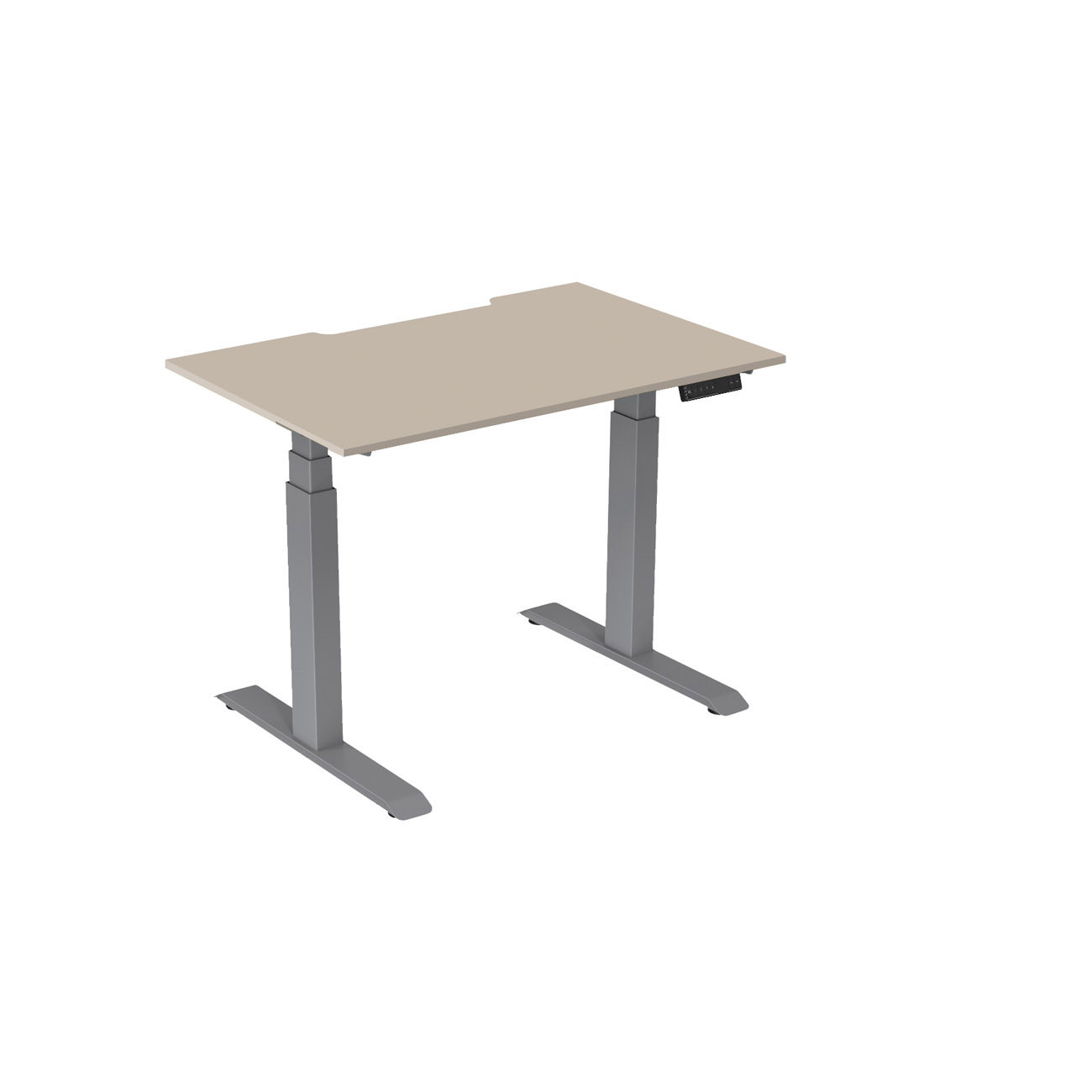 Bureau assis-debout Activ'o - Réglage électrique en hauteur - L.120 x P.80 cm - Plateau Argile avec échancrure - Pieds métal Gris