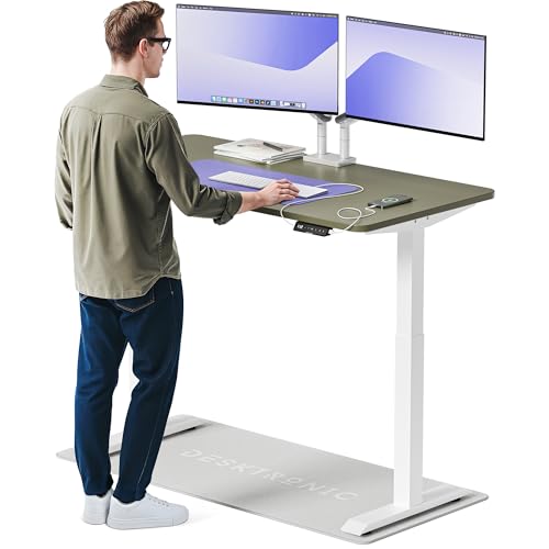 Desktronic Bureau Assis-Debout Électrique – Plateau de Table en Bois Massif – Hauteur Réglable et Stabilisée – Commande Tactile avec Mémoires – Ports USB Intégrés – Tableau Assis-Debout 120x60cm