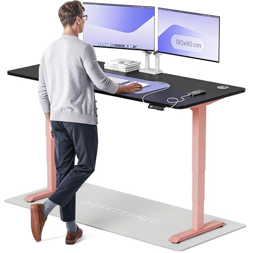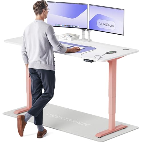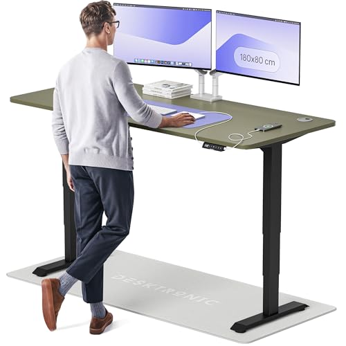 Desktronic Bureau Assis-Debout Électrique – Hauteur Réglable et Stabilisée – Commande Tactile avec Mémoires – Ports USB Intégrés – Tableau Assis-Debout 180x80cm