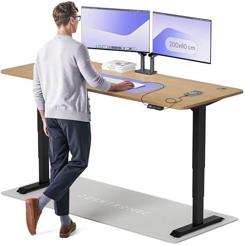 Desktronic Bureau Assis-Debout Électrique – Plateau de Table en Bois Massif – Hauteur Réglable et Stabilisée – Commande Tactile avec Mémoires – Ports USB Intégrés – Tableau Assis-Debout 200x80cm