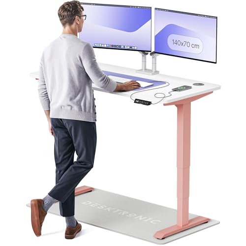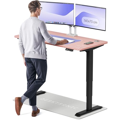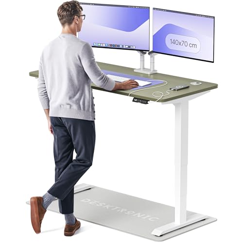 Desktronic Bureau Assis-Debout Électrique 140x70cm– Hauteur Réglable – Commande Tactile avec Mémoires – Ports USB – Bois Européen – Table Réglable