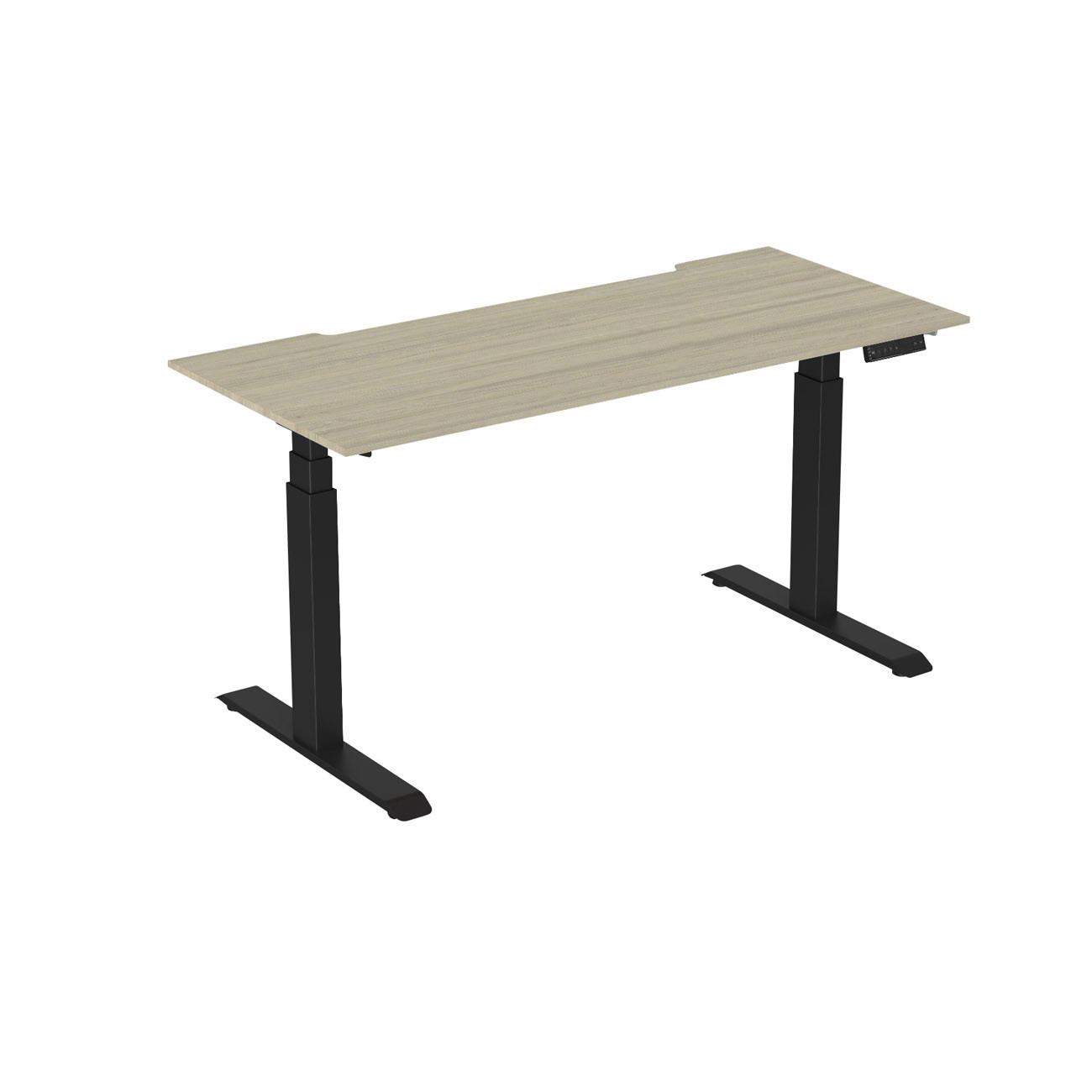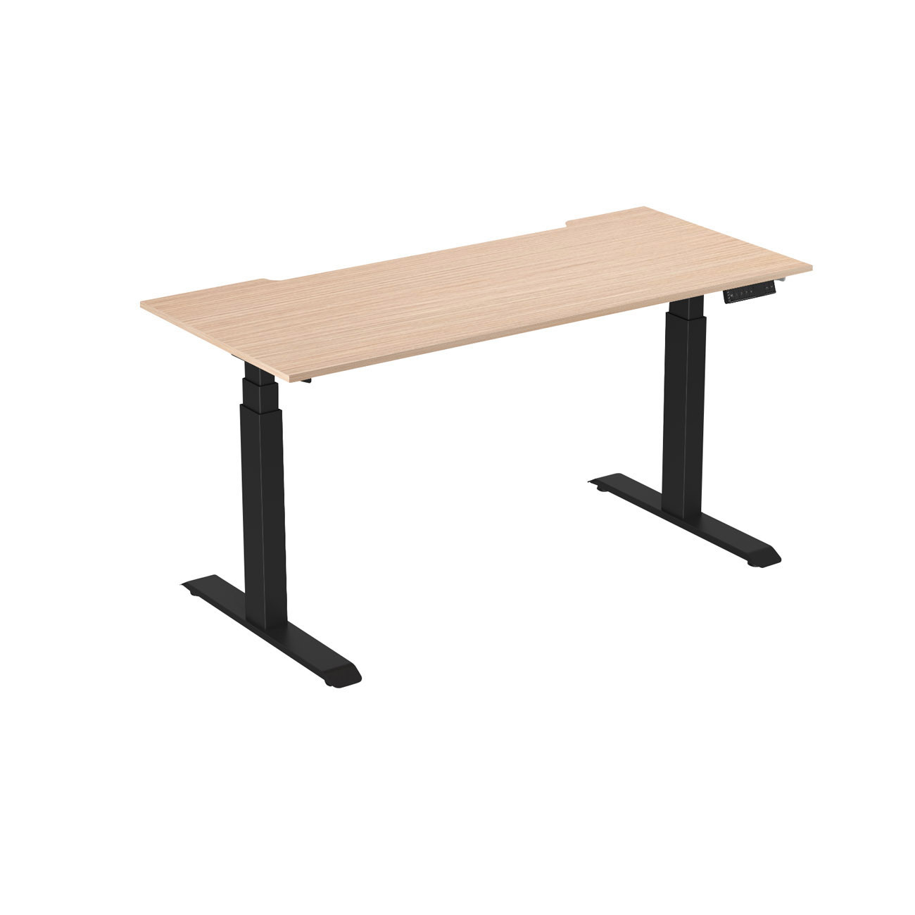 Bureau assis-debout Activ'o - Réglage électrique en hauteur - L.160 x P.80 cm - Plateau Chêne Nebraska avec échancrure - Pieds métal Noir